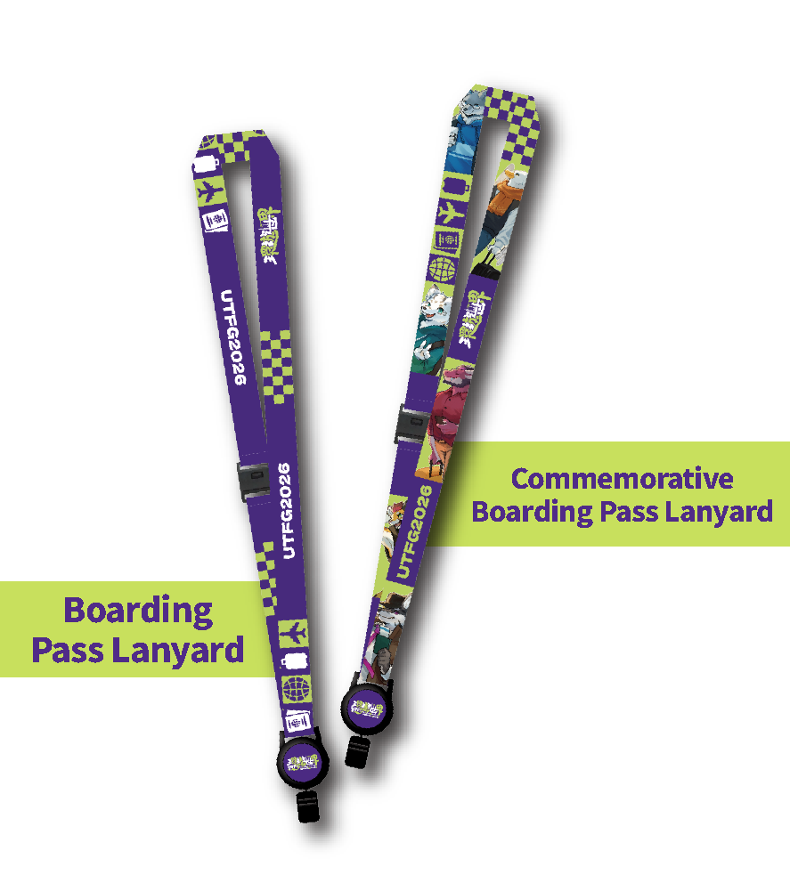 The UTFG lanyard features a retractable clip and a side-release buckle, allowing even those in fursuits to wear or remove it elegantly when showing their boarding pass. Business Class and above will receive the Commemorative Boarding Pass Lanyard illustrated by Mintea, featuring official characters to accompany your world tour!