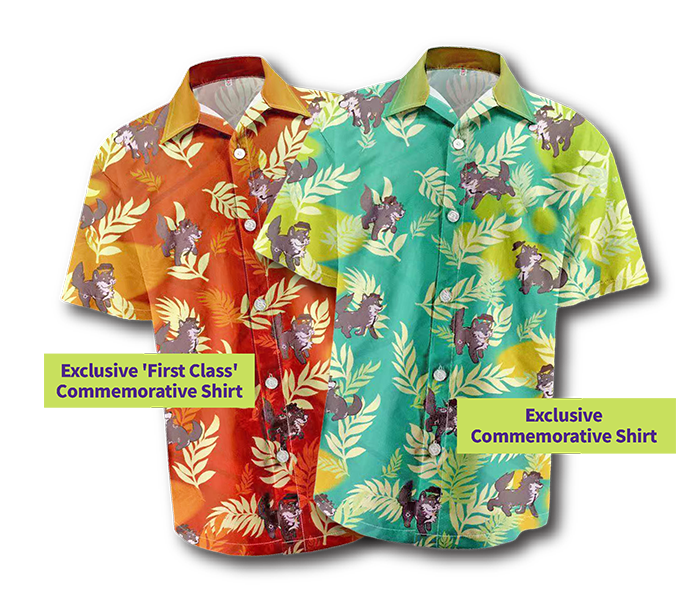 A passionate journey starts with a passionate outfit! This year’s commemorative apparel features a button-down shirt design, depicting our official mascots strolling across a lush green meadow. Wearing it feels like a relaxing tropical island vacation. First Class guests will receive the unique First Class Exclusive Shirt, ensuring you are the “hottest” focal point in any crowd!