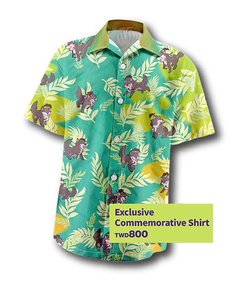 A passionate journey starts with a passionate outfit! This year’s commemorative apparel features a button-down shirt design, depicting our official mascots strolling across a lush green meadow. Wearing it feels like a relaxing tropical island vacation.