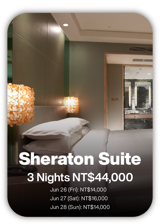 • From May 25 onward: For stay-related inquiries, please contact Anna Yang of the Sales Department at Sheraton Hsinchu Hotel at anna.yang@sheraton-hsinchu.com.